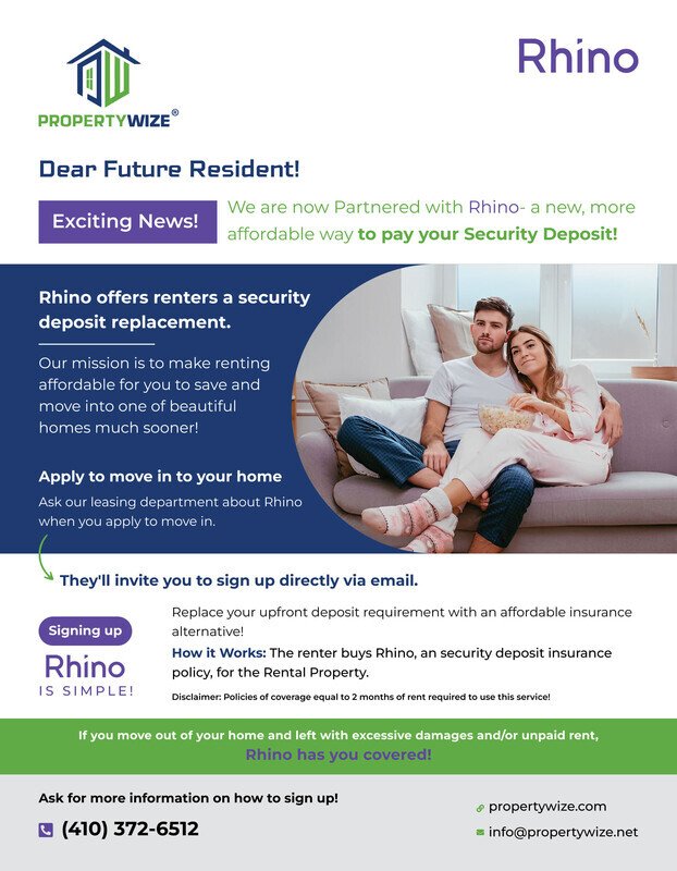 Important Notice: At PropertyWize, your security is our priority. We will only contact you using our verified phone number (410-267-xx52) and email addresses ending in @propertywize.com. We will never request payments without first providing a written notice sent from our official email. If you receive any suspicious calls or messages claiming to be from PropertyWize, do not engage and contact us immediately at 410-267-35xx to verify. Stay vigilant and help us protect your information by reporting any potential scams.
